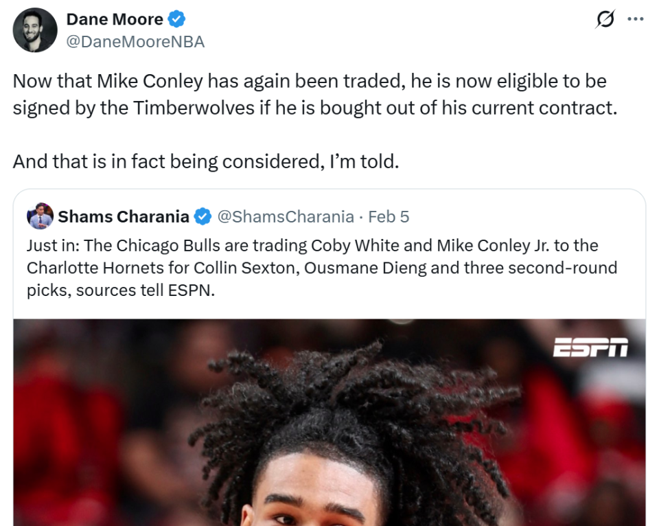 38岁的康利先是被森林狼送往公牛,随后又辗转前往黄蜂,后者后场人才济济,预计将买断康利,为他重回铺平道路,森林狼也做好了与这名更衣室领袖重聚的准备。