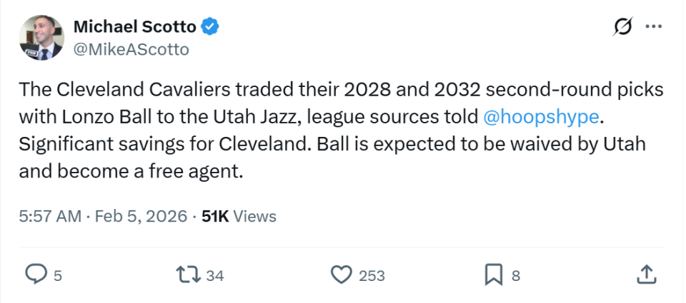 反复饱受伤病困扰的鲍尔,本赛季表现下滑严重,骑士队不得不打包两枚次轮签将他价值1000万美元的合同送出去,爵士官方也火速将其裁掉。