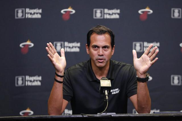 斯波在一支球队执教的经历,已经创下了纪录。他于1997-98赛季开始在热火担任助教。在帕特-莱利手底下工作了11个赛季之后,他于2008-09赛季开始出任热火主帅,直至今日。他率领热火6次打入总决赛,2次夺冠。他麾下的球星包括韦德、詹姆斯、波什、巴特勒和阿德巴约。执教至今,他率领热火807胜591负。